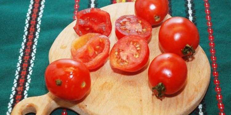 шаг 7Приобретите для готовки максимально спелые красные помидоры небольшого размера, после чего опустите их в кипяток на 1-2 минуты и избавьте от шкурки. Разрезав пополам, удалите семена и по желанию разрежьте на дольки.