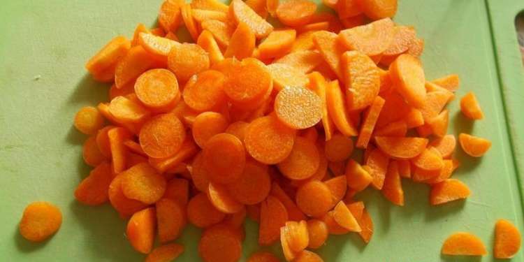 шаг 3Целую свежую морковину необходимо промыть в проточной воде, а затем аккуратно снять с нее кожуру тонким слоем. После этого следует порезать овощ любым удобным для вас образом. Оптимальный вариант – кружочками.