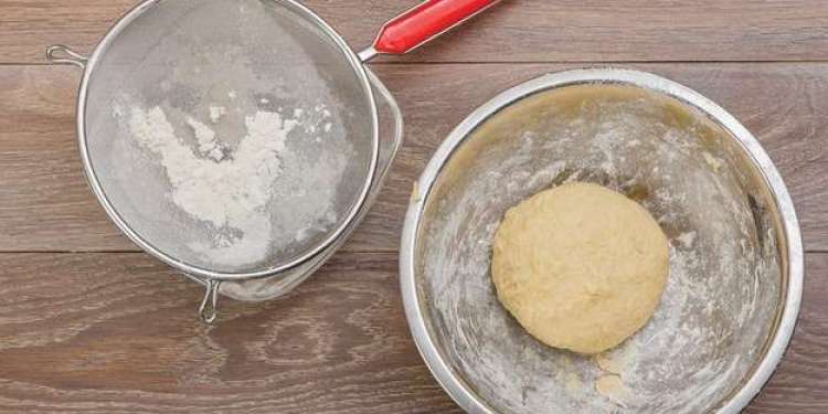 шаг 2Первым делом просеиваем муку из большого пакета через сито. После делаем ямку в муке и вбиваем туда куриное яйцо, добавляем 1 столовую ложку растительного масла, 100 мл воды комнатной температуры, соль по вкусу и начинаем замешивать тесто.