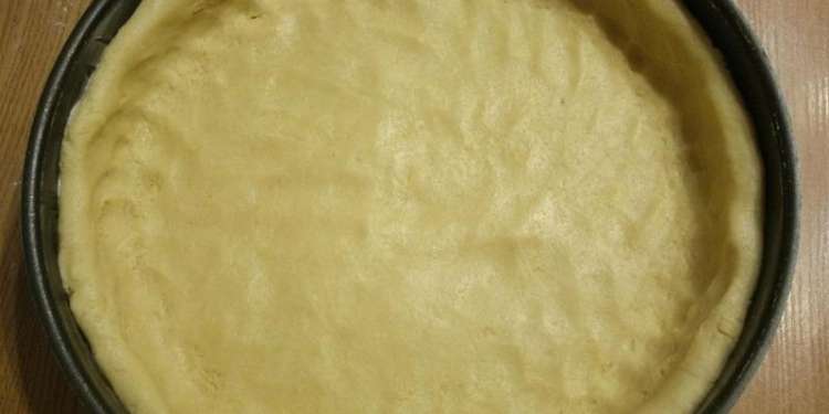 шаг 8Далее возьмите форму для запекания, обработайте ее края маслом и выложите в нее тесто, равномерно распределяя по всей поверхности и формируя края одинаковой толщины.