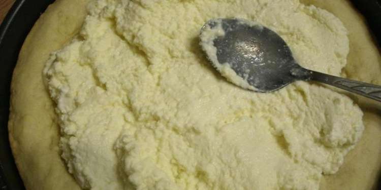шаг 21Форму с пирогом достаньте из духовки и равномерно распределите начинку из творога в специальной выемке.